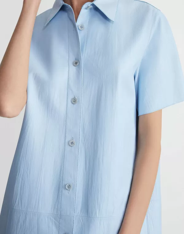 Considered Proportions And Artisanal Technique Define This Buttoned Tunic Shirt, Rendered In The Finest Italian Lambskin Hand-Worked For Subtle And Discrete Texture. Exceptionally Soft And Light, The Clean-Lined, Straight Shape Is Flawlessly Cut In An Extended Knee-Length With Above Elbow Sleeves. Pair With The Coordinating Riverside Pant, For The Ultimate In Understated Luxury.
